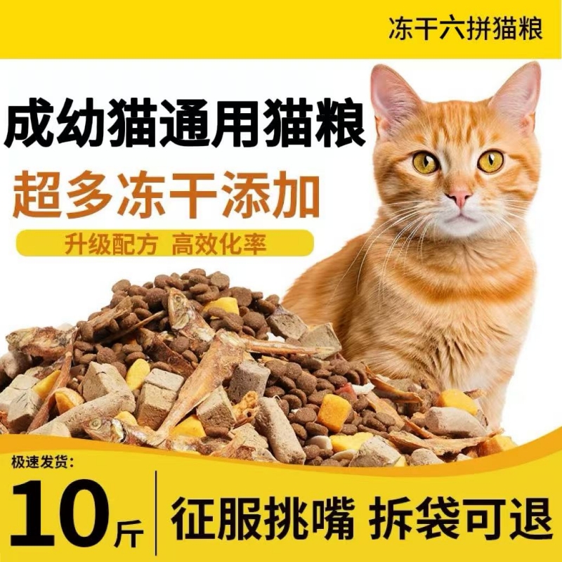 猫粮通用型成猫幼猫流浪猫主粮鲜肉冻干猫粮高肉含量10斤实惠装