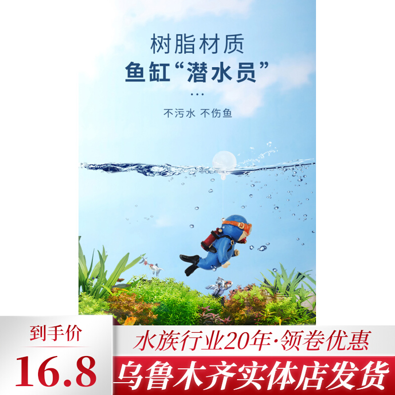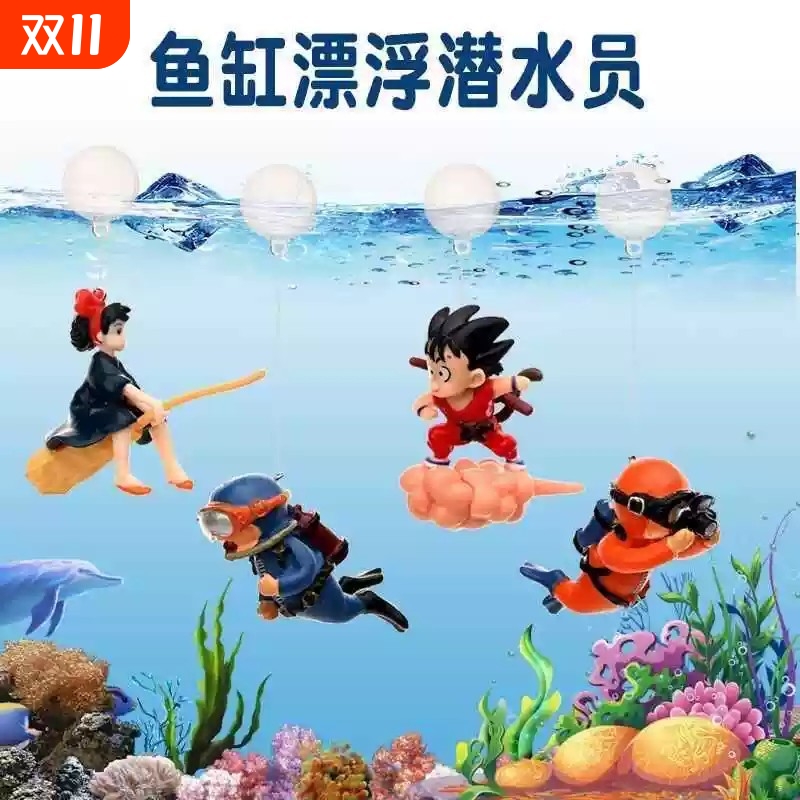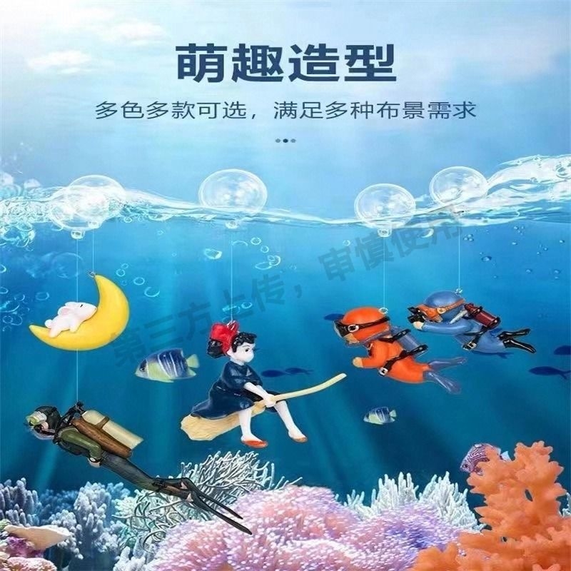 小魔女鱼缸漂浮潜水员蓝胖子摆件造景海底世界水族箱悬浮创意装饰
