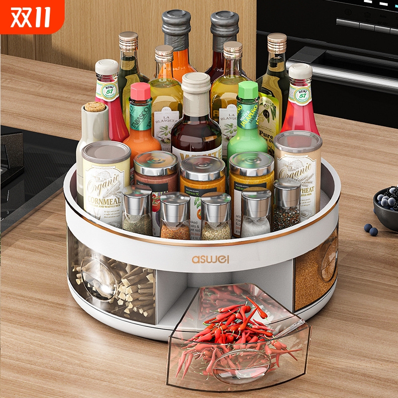 一体多格调味料佐料收纳台面旋转调料油盐酱醋瓶置物架厨房调料盒