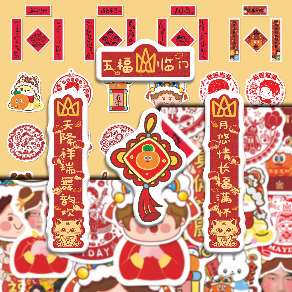 160张五月天新年系列对联窗花和五月天一起过春节创意贴画diy桌