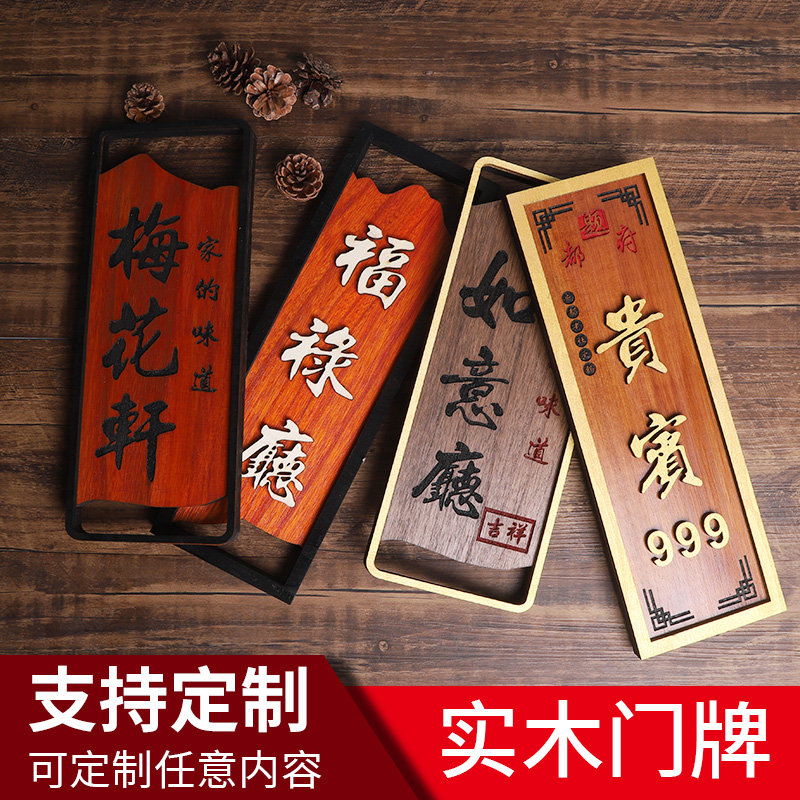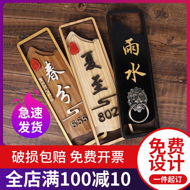 中式实木定制复古民宿包间门牌