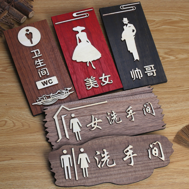 实木中式复古厕所自粘标志指示牌