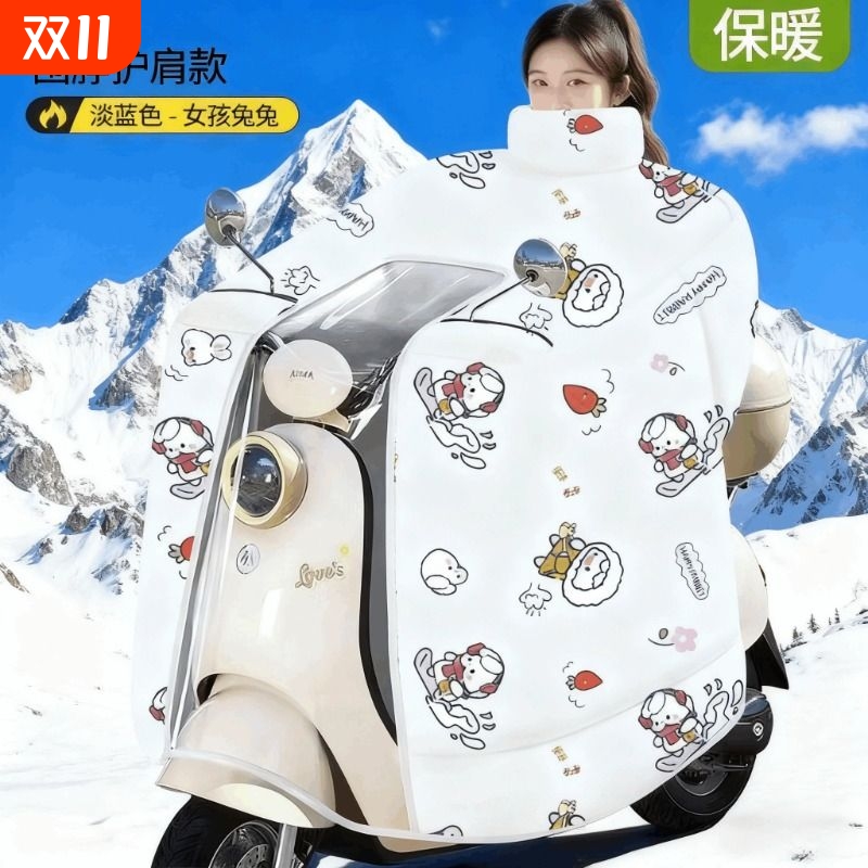 电动车挡风被全包冬季加绒摩托车围脖护肩斗篷保暖防寒防风防水罩
