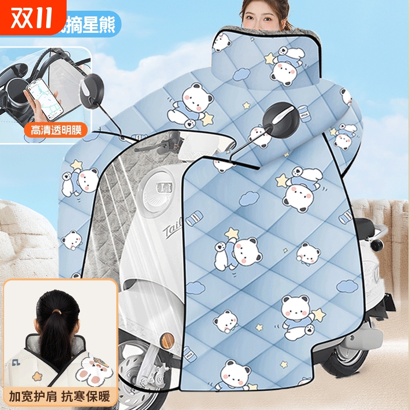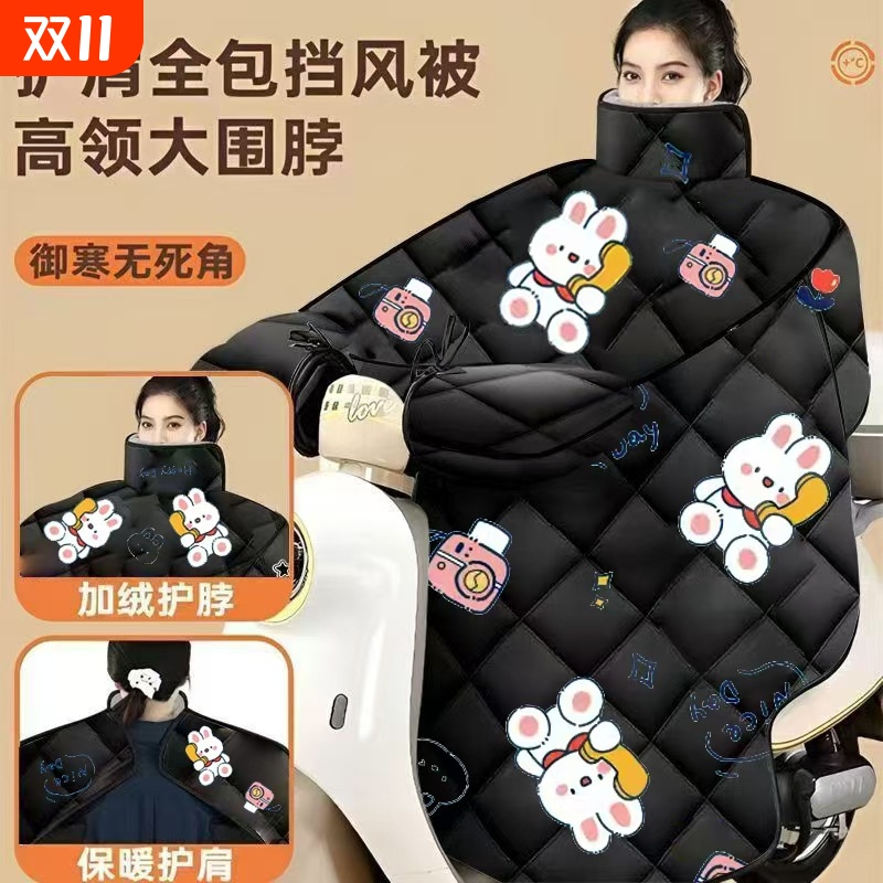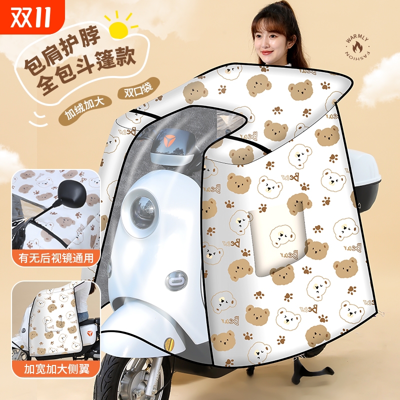 电动车挡风被冬季保暖加绒加厚斗篷式电瓶摩托车档风全包围护脖款