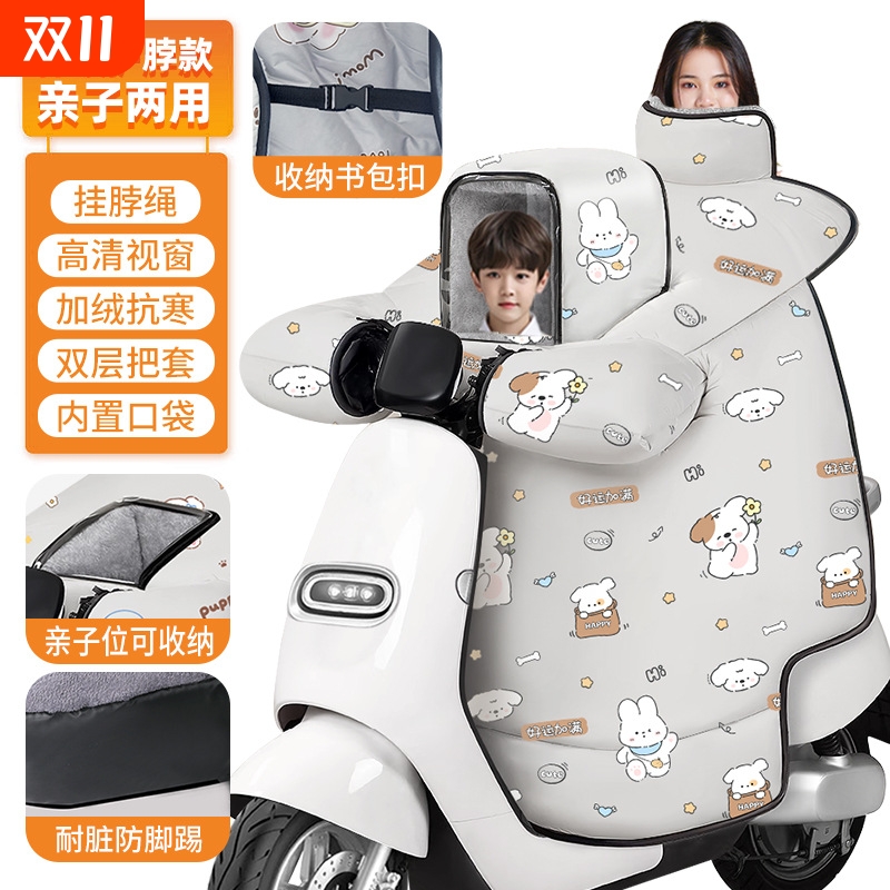 电动车挡风被儿童亲子冬季加绒加厚全包围脖新款电瓶防水防风骑行