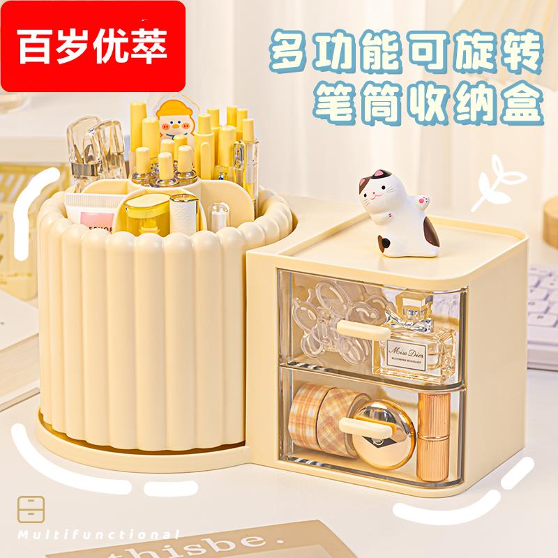 旋转笔筒收纳盒可访问的豪华奶油风格在高端学生桌面家庭多功能大容量