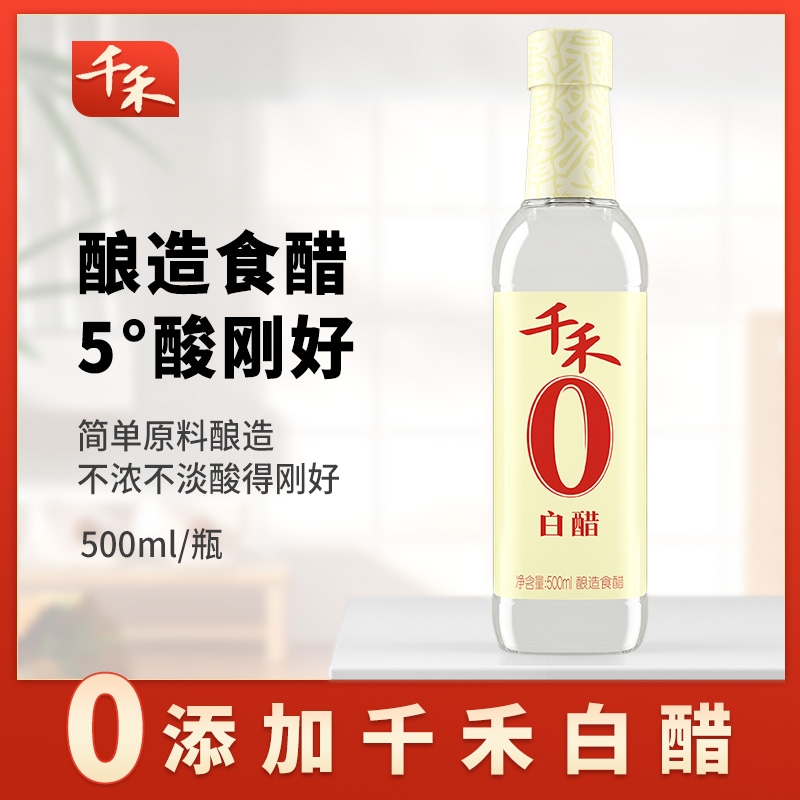 千禾醋厨房白醋500ml粮食酿造食用均可洗脸泡脚清洁除垢家用凉拌