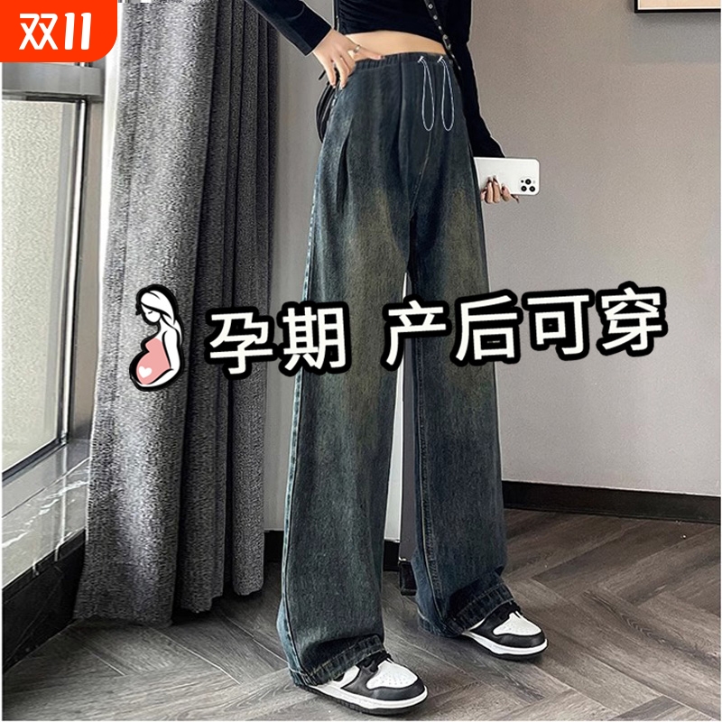 孕妇裤春秋款外穿阔腿牛仔裤2025新款小个子长裤孕期孕后均可穿