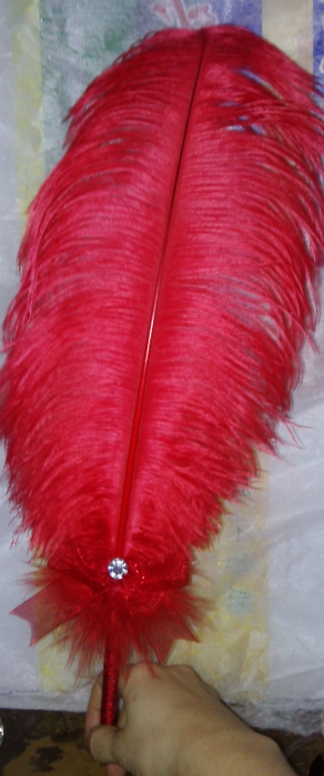 ? 50CM高 夸张型天然鸵鸟毛笔 羽毛签到笔(进口油漆笔)红,