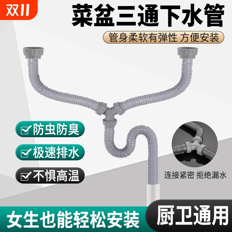 y型三通下水管水槽菜盆二合一排水管三头通加长下水道接头通用