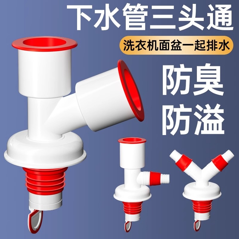 洗衣机排水管三头通面盆下水道三通防臭地漏Y型接头二合一分水器