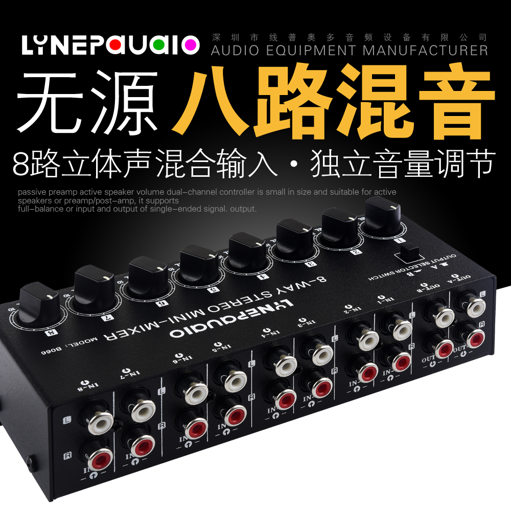 迷你立体声8路无源混音器 无需电源8通道立体声音频混音器RCA接