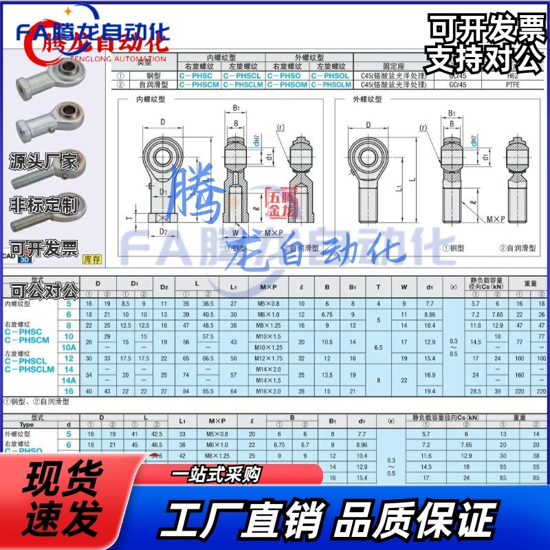外螺纹型关节轴承C-PHSO5/6/8/10/10A/12/14