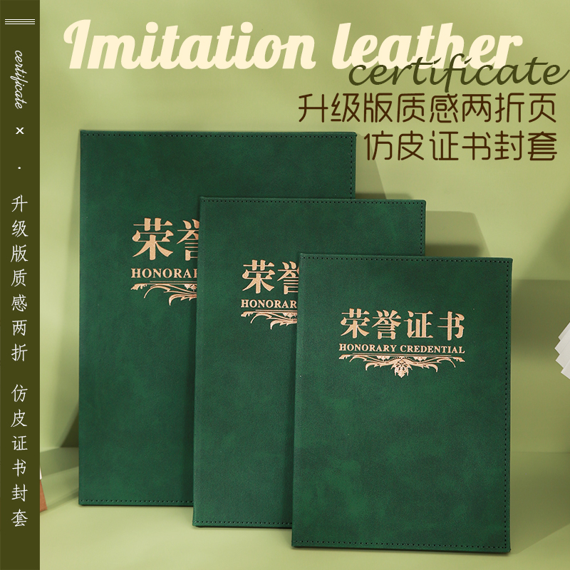 二折高档仿皮签约本聘书证书封面烫金A4荣誉证书奖状外壳定制创意l