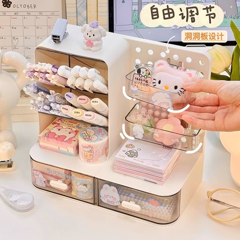 多功能桌面收纳盒洞洞板笔筒创意可爱儿童女孩文具整理盒收纳盒大