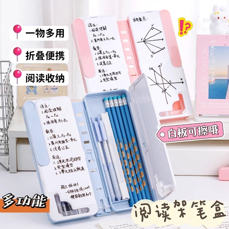 【六一儿童礼物】多功能学生阅读书架文具盒双层大容量可折叠笔盒