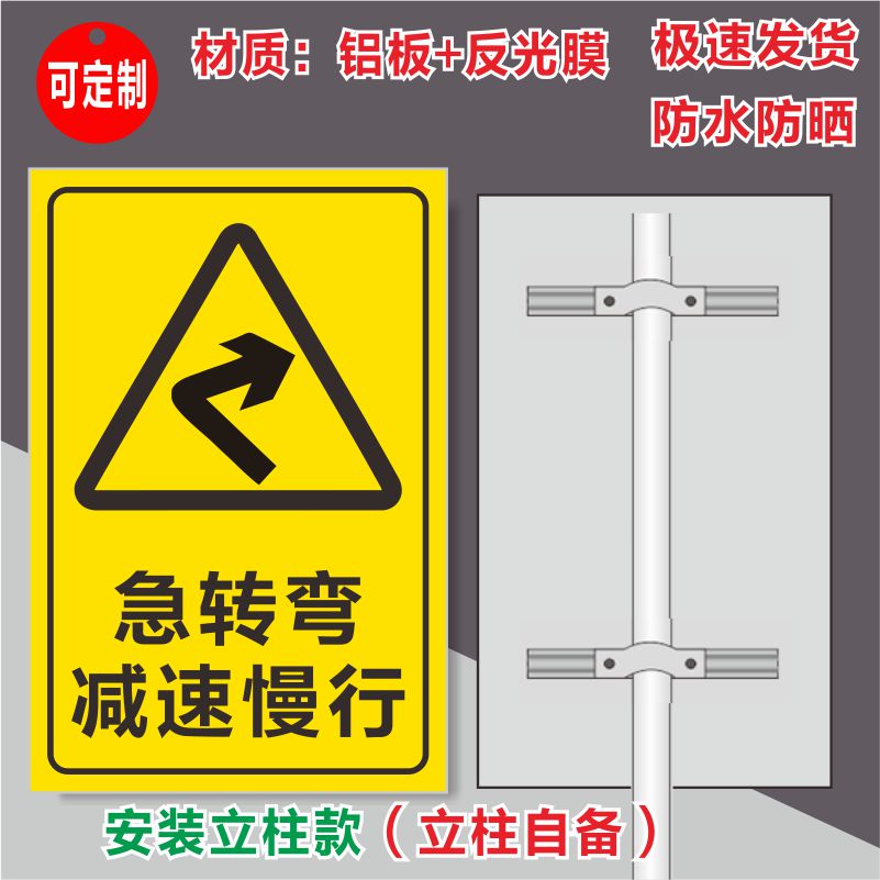 速发急转弯减速慢行事故多发安全警示交通标牌道路提示牌铝反光防