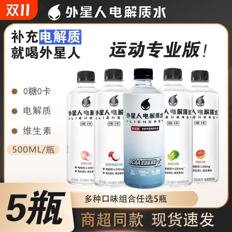 外星人电解质水500ml*5瓶/600ml*4瓶多口味含维生素饮