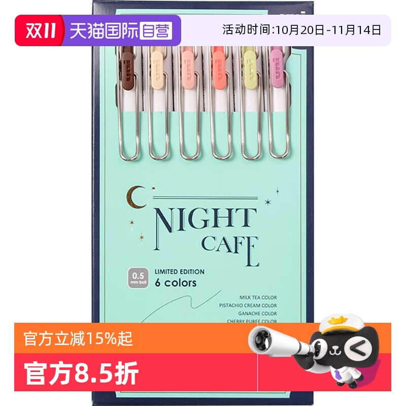 三菱中性笔夜间咖啡店手账彩色笔