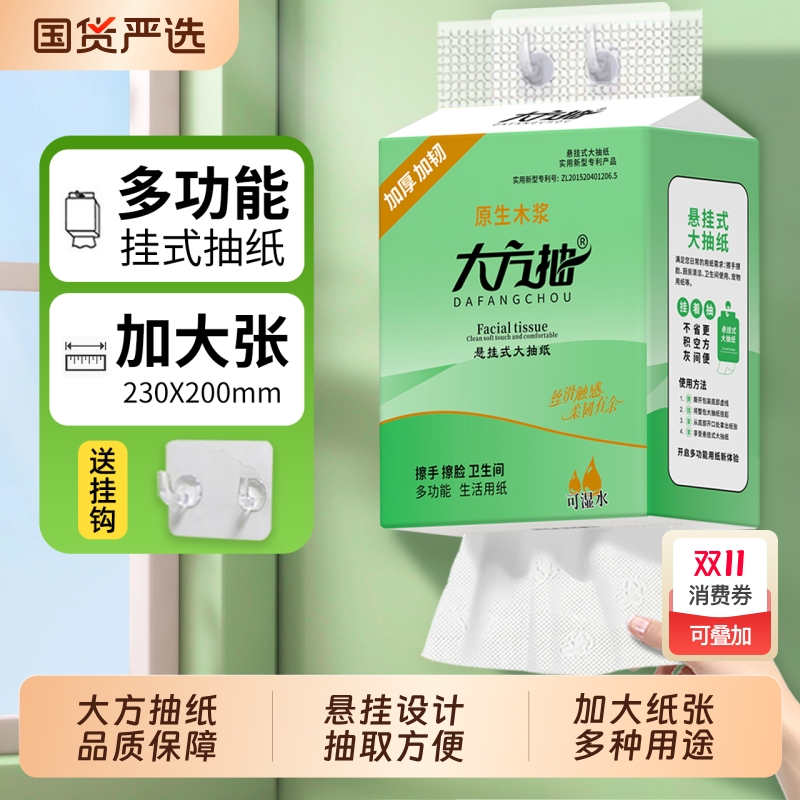 大方抽悬挂式抽纸巾大尺寸卫生纸餐巾纸大包厕所纸大便壁挂式手纸