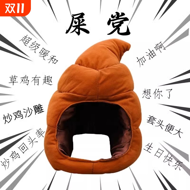 屎粑粑头套大便答辩创意搞笑包跟棉拖鞋恶搞网红搞怪奇葩沙雕帽子