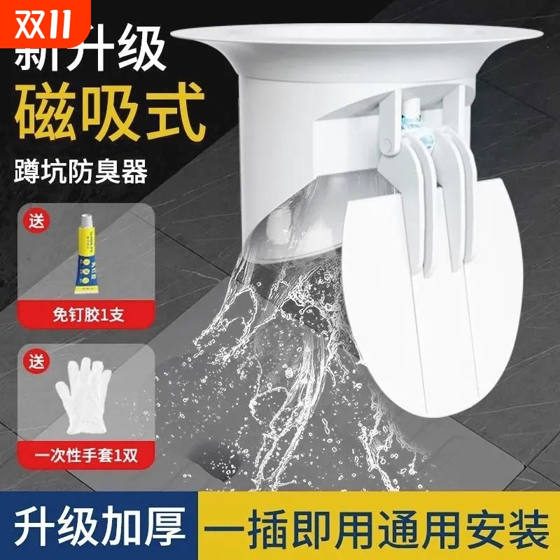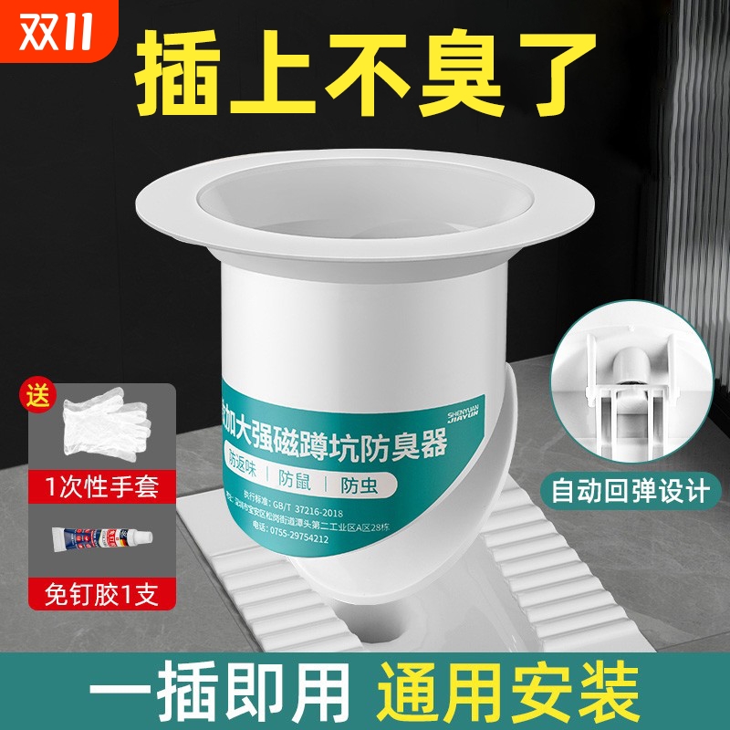 蹲便器防臭器厕所堵臭器卫生间蹲坑防堵大便器池盖板神器磁吸防虫