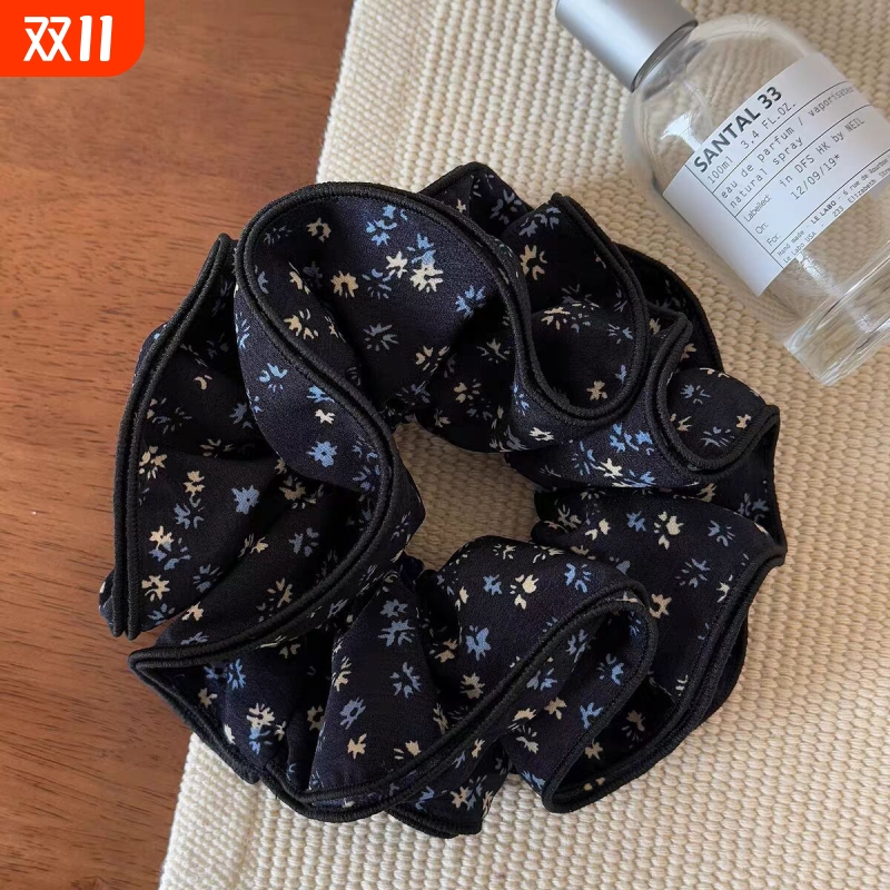 法式碎花藏蓝色4层大发圈气质丸子头发绳高级感扎头绳秋冬发饰新