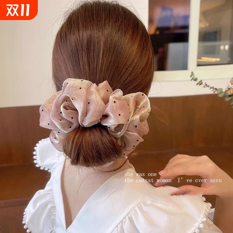 法式温柔波点大肥肠圈珠光纱渐变气质丸子头发圈马尾发绳发饰