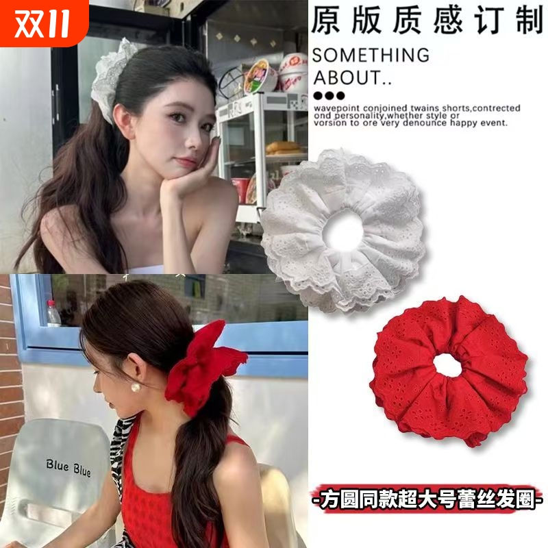 高级法式超大白色安可拉红蕾丝大肠发圈头绳丸子头发绳发饰女双层