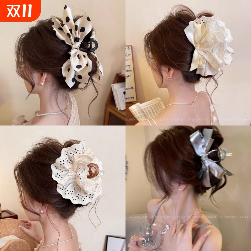 温柔法式波点大蝴蝶结抓夹女后脑勺2025新款高级感发夹鲨鱼夹头饰