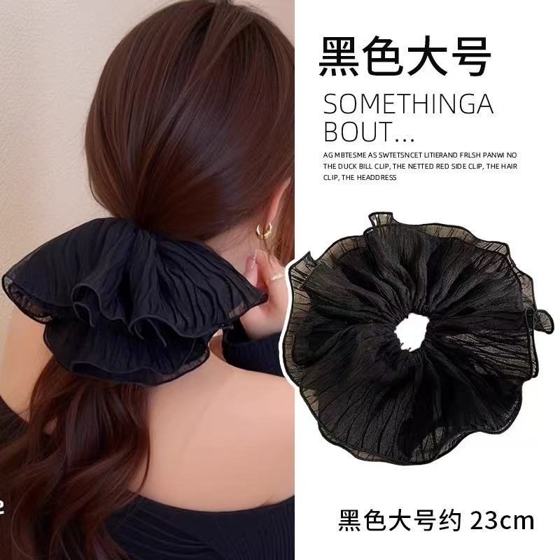 超大号!欧根纱双层网纱法式黑色大肠发圈低马尾丸子头发绳头绳女