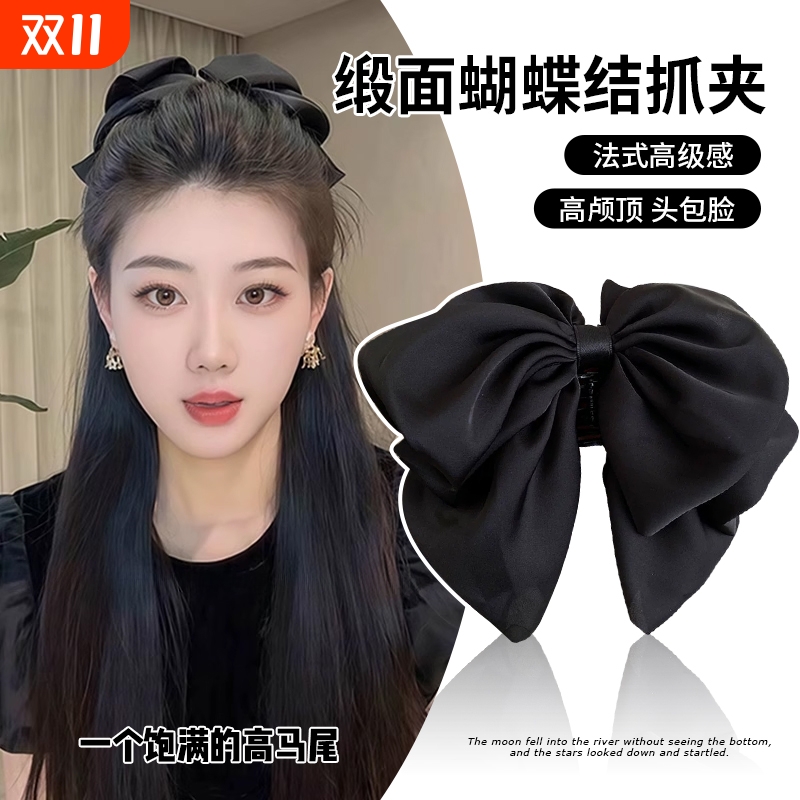 法式高级感黑色蝴蝶结大号抓夹女生2025新款饱满后脑勺缎面发夹子