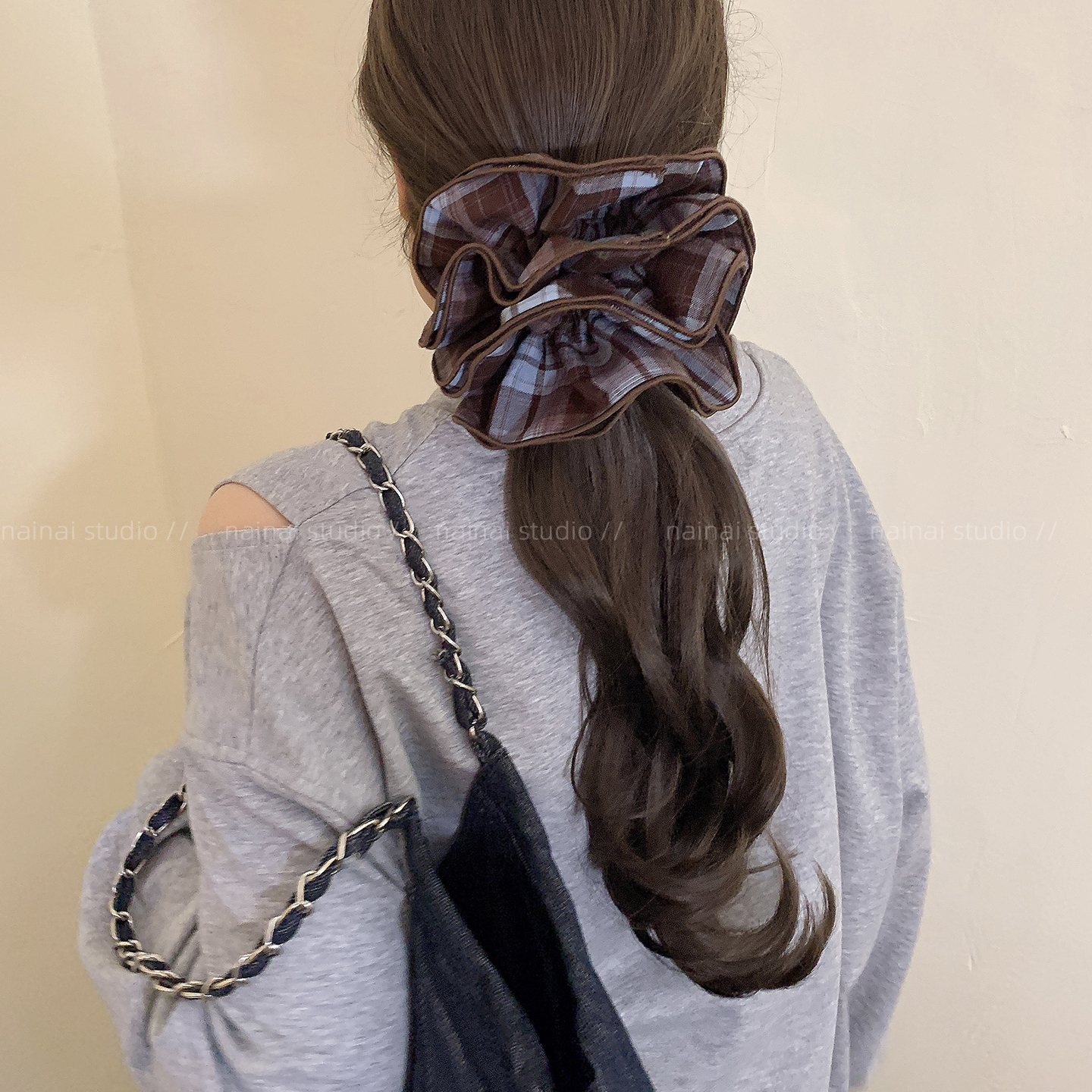 格子大肠发圈~四层大号复古法式韩国ins慵懒风丸子头扎马尾发绳女
