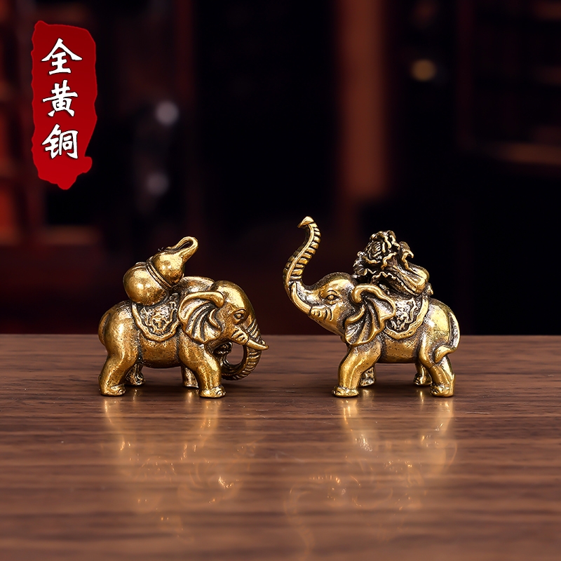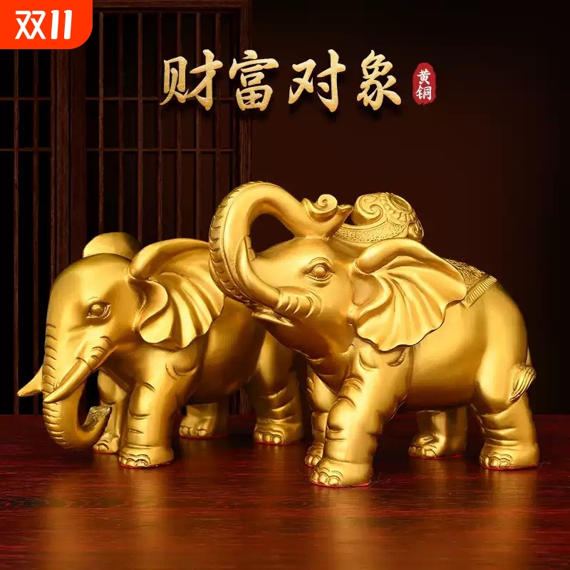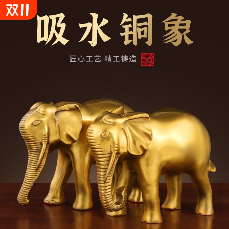 纯黄铜大象摆件一对铜象家居客厅酒柜办公室全铜吸水象装饰工艺品
