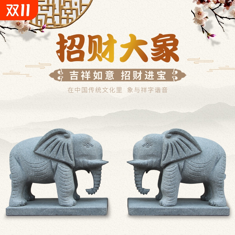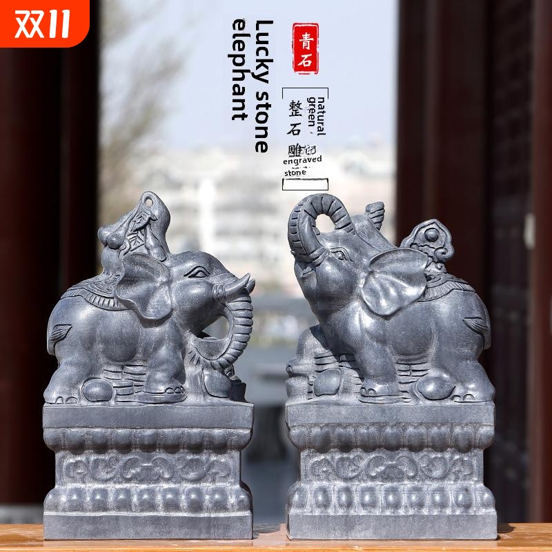 大象摆件一对招财纳福桌面家居客厅办公桌茶宠吉祥办公室工艺装饰