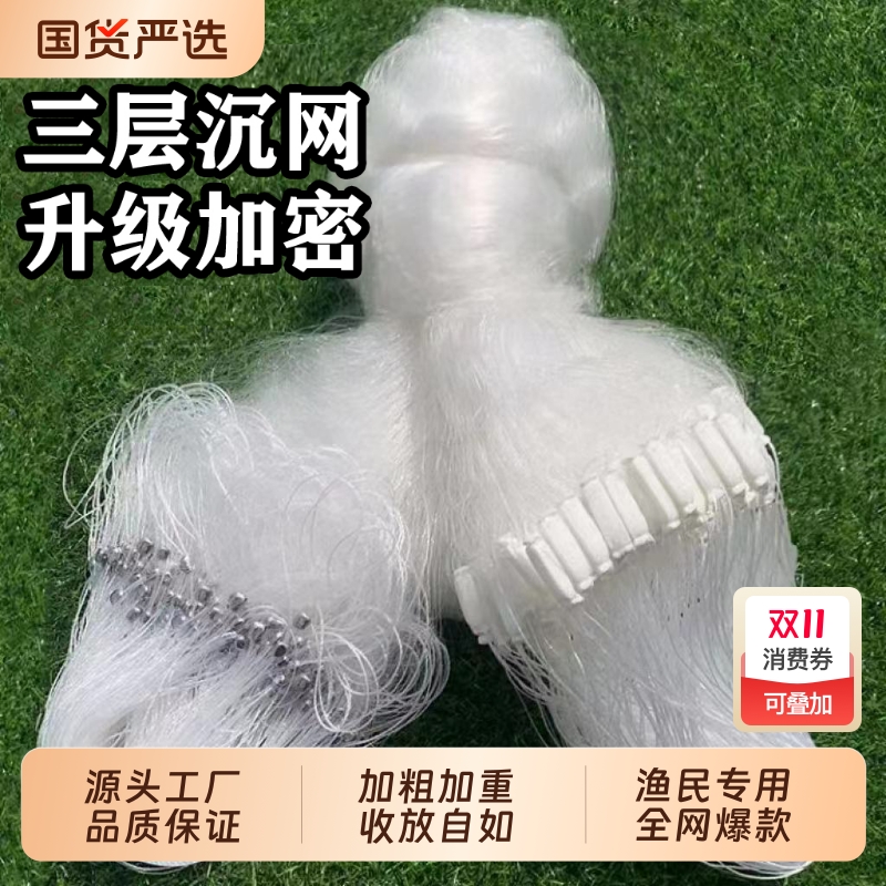丝鱼网粘网三层沉网鲫鱼网捕鱼网专用柔丝软丝网渔网挂网大鱼加重