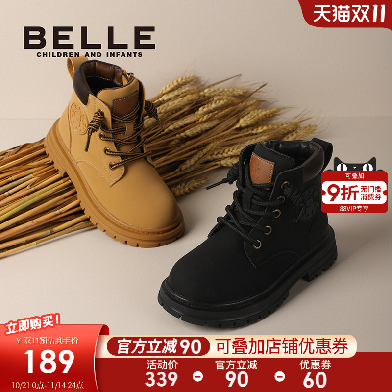 百丽童鞋儿童马丁靴2025新款秋季户外大黄靴男童工装靴宝宝短靴子