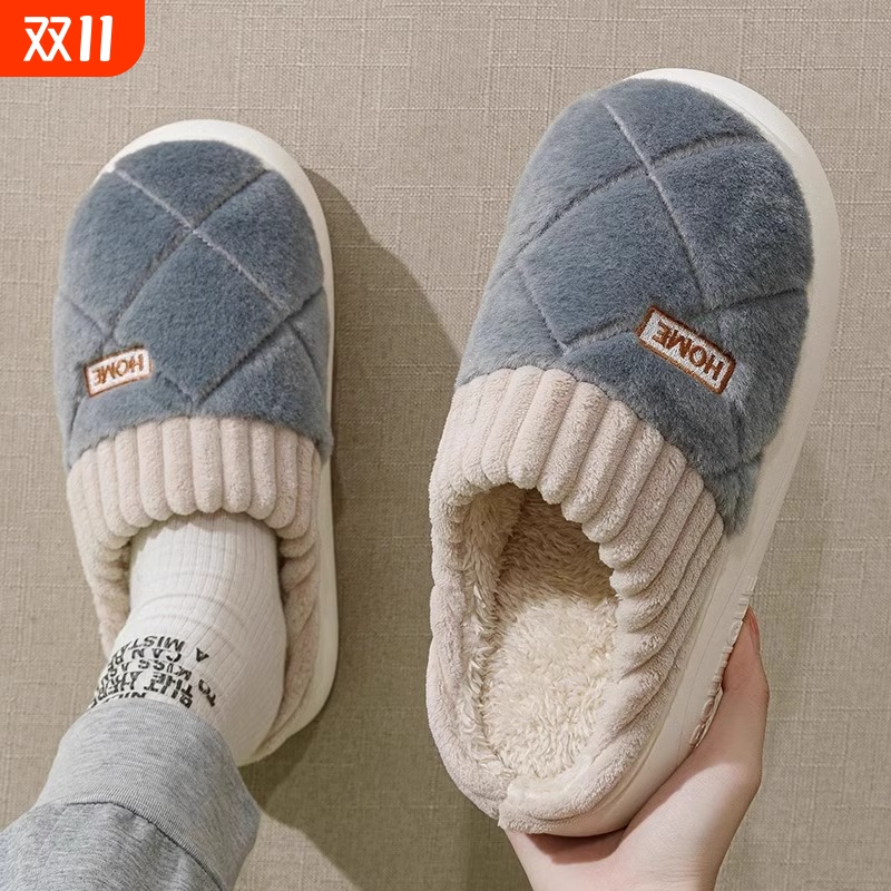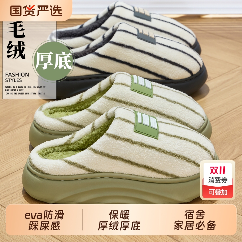 厚底棉拖鞋女踩屎感加绒情侣款冬