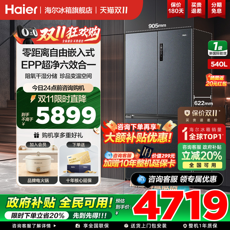 海尔冰箱十字四开门540升大容量