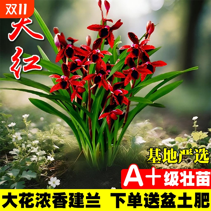 建兰天红四季兰花苗|千人加购