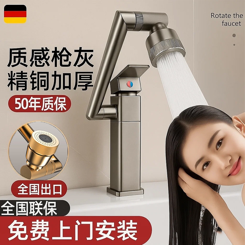 全铜卫生间洗脸盆水龙头单冷万向旋转面盆洗漱台洗手盆浴室柜台盆
