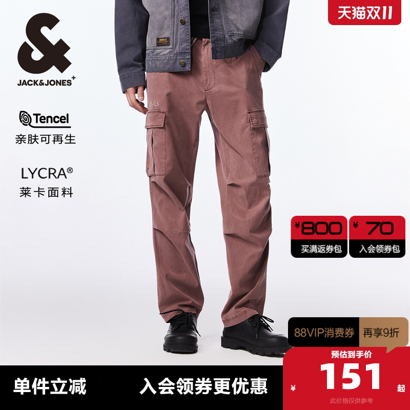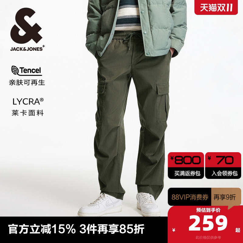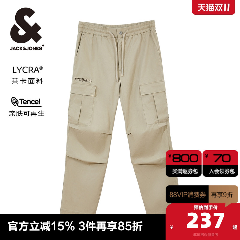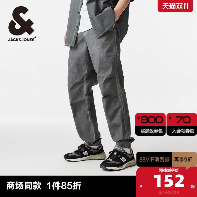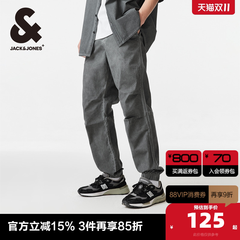 杰克琼斯男装秋季抽绳可调节腰头字母刺绣略宽松休闲裤男士裤子