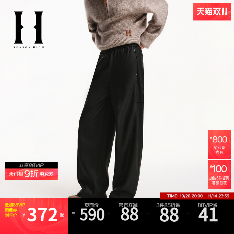 SEASONHIGH弹力抽绳纯色休闲裤女