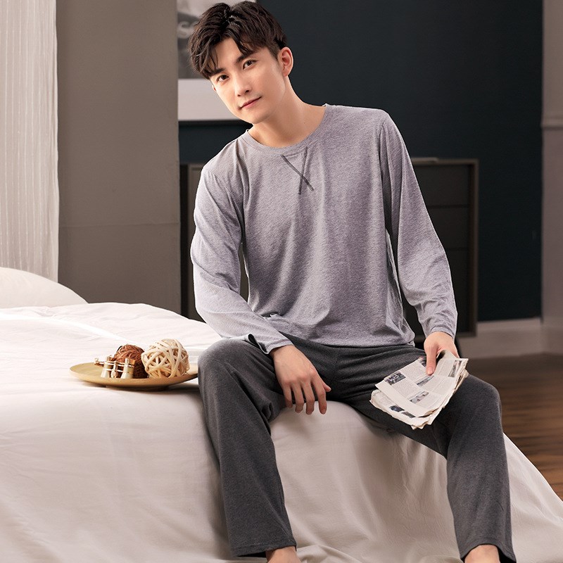 莫代尔男士睡衣夏季长袖套装春秋款薄款青年韩版加肥加大码家居服
