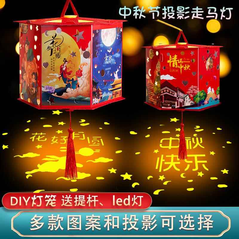 中秋节投影走马灯笼儿童手工diy材料手提发光镂空花灯幼儿园亲子