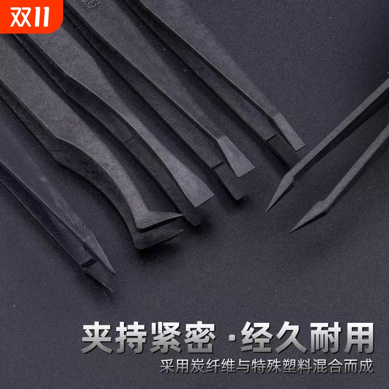 防静电塑料镊子10只装维修工具电子厂专用黑色尖头宽口夹子套装