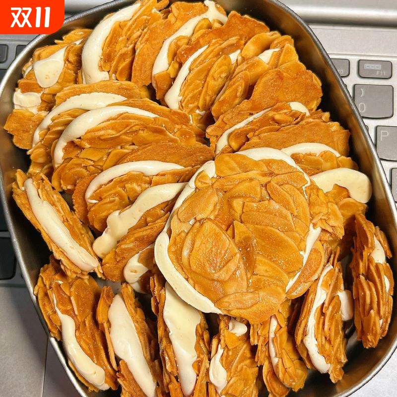 咸甜酥脆一定要试试~扁桃仁夹心酥 杏仁牛扎饼干酥网红零食