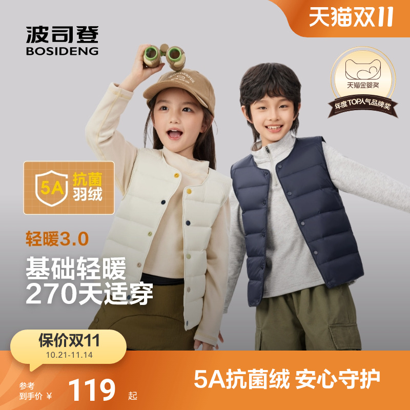 鸭鸭儿童轻暖连帽羽绒服男女同款
