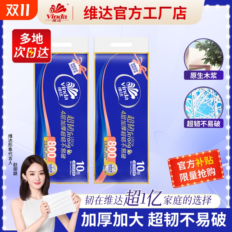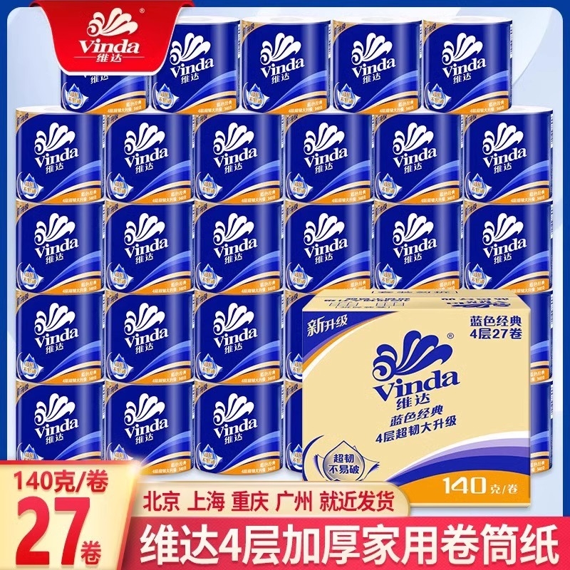 维达蓝色经典有芯卷纸4层140克27卷卫生纸厕纸家庭装整箱家用超