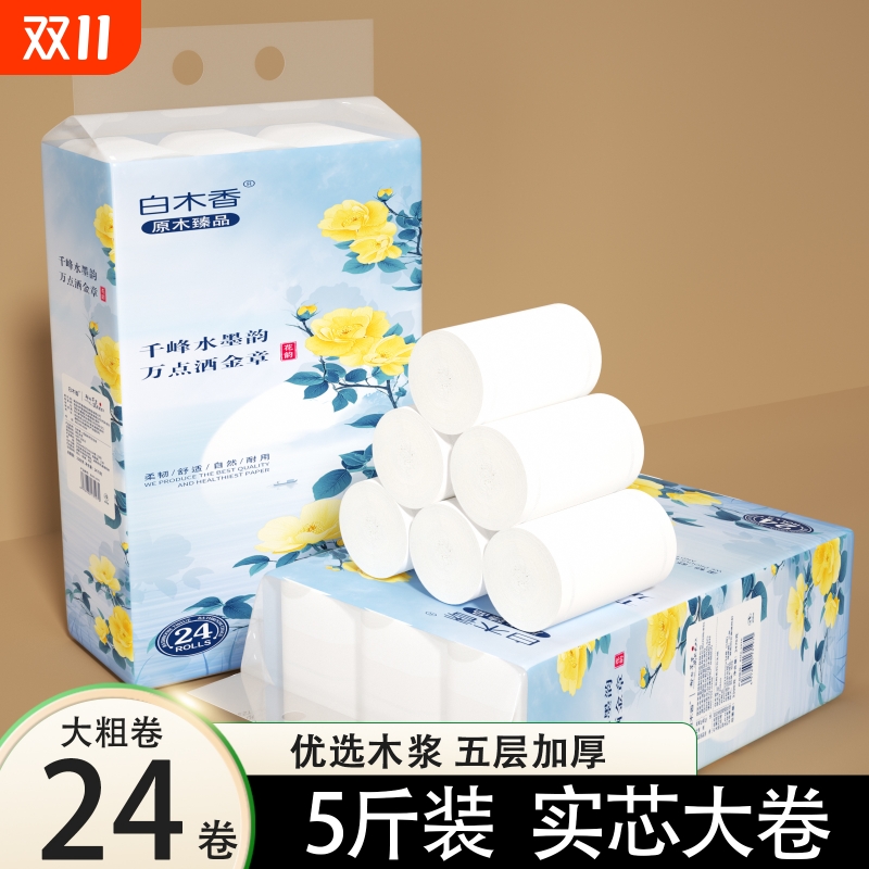 无芯卷纸5斤24卷家庭装家用宿舍整箱批发实惠装擦手纸纸巾卫生纸